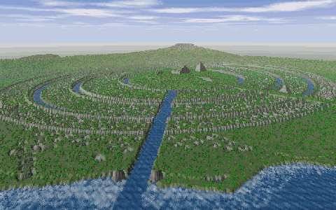 Im Zentrum der Insel soll es einen Tempel, mit einem heiligen Hain gegeben